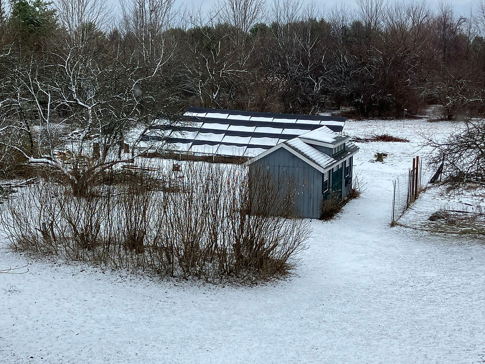 The project was finished on the morning of December 15 (in the snow) and the town inspector gave his blessing that afternoon. So, the project qualified for the 30% federal tax credit! With that, and proposed hikes in electric prices over the next few years, the payback for the project is probably about 5 years. Since then, it has been a great pleasure to grab my brush and clear the panels after a snowfall the night before. By my calculations the ground mounted and rooftop arrays will cover about 90% of our electric needs. I have fondly dedicated the project to my mother.